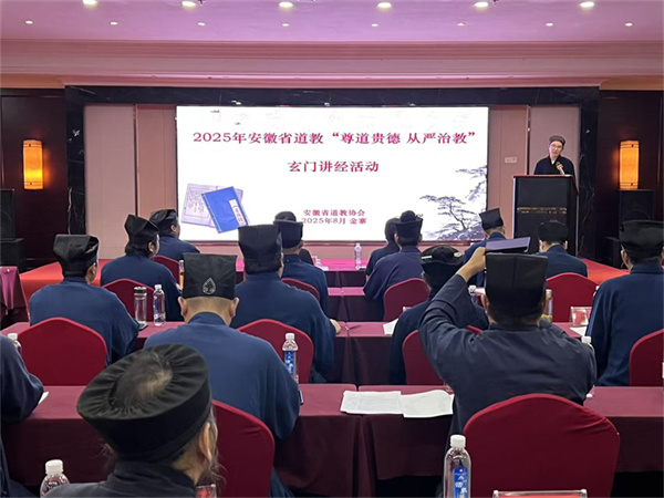 为纪念中国人民抗日战争暨世界反法西斯战争胜利80周年,弘扬我省道教界爱国爱教优良传统,深入系统推进我国道教中国化安徽实践,8月26日至29日,安徽省道教协会在金寨县举办2025年爱国主义教育培训班暨玄门讲经活动,省道协班子成员、部分协会和宫观负责人、中青年骨干教职人员及玄门讲经参赛代表参加活动,省民宗委相关处室人员应邀参加。